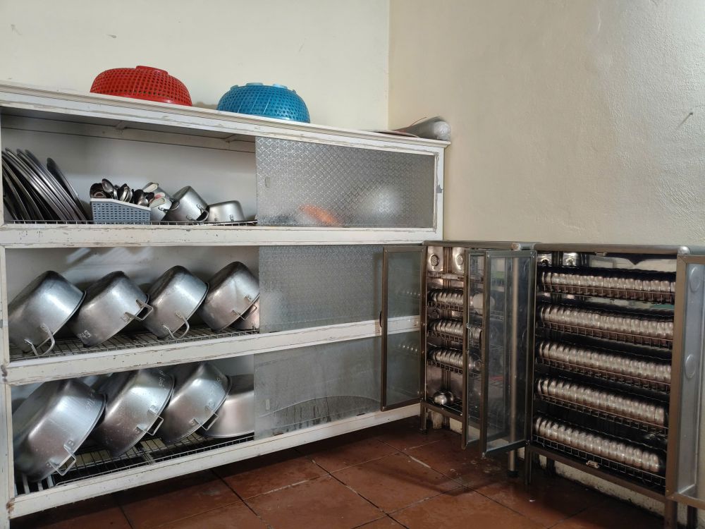 Khu vực chế biến, nấu nướng và dụng cụ nhà bếp được sắp xếp gọn gàng, sạch sẽ, thực hiện nghiêm túc nguyên tắc “bếp một chiều”, đảm bảo quy trình khép kín từ khâu sơ chế đến khi chia suất ăn cho trẻ.