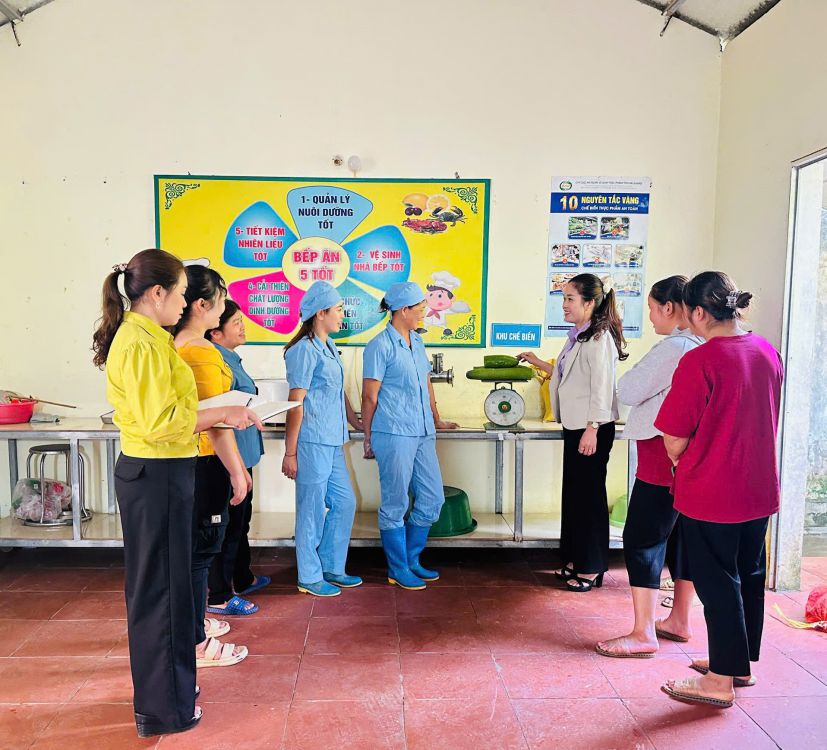 Trường Mầm non Đồng Tiến tăng cường công tác kiểm tra bếp ăn, đảm bảo an toàn thực phẩm cho trẻ