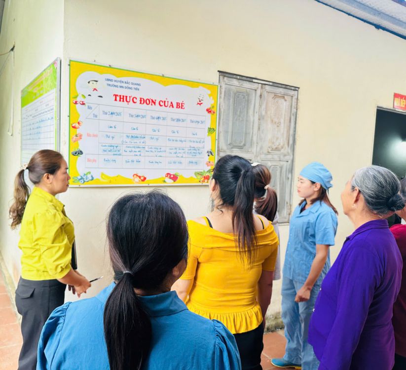Sáng ngày 22/10/2025, Ban Giám hiệu Trường Mầm non Đồng Tiến đã phối hợp với Ban đại diện cha mẹ học sinh tổ chức kiểm tra bếp ăn và công tác chuẩn bị thực phẩm phục vụ bữa ăn hàng ngày của trẻ tại trường.
