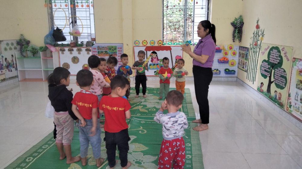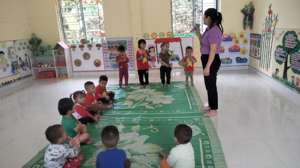 Nhóm trẻ 24 - 36 tháng tuổi Điểm trường Buột trường Mầm non Đồng Tiến tổ chức hoạt âm nhạc