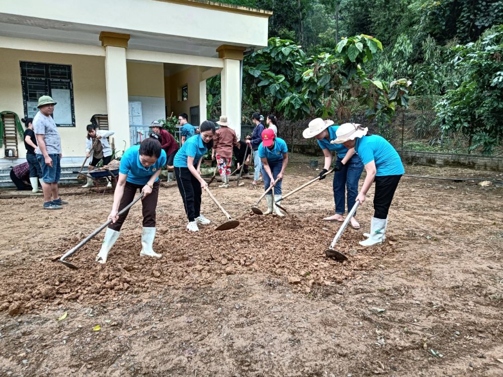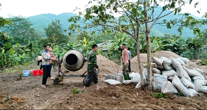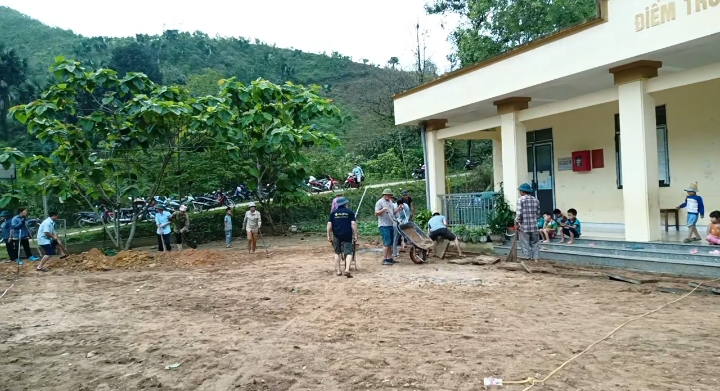 Sáng ngày 20/4/2024 cán bộ giáo viên trường MN Đồng Tiến tham gia Lao động đổ sân bê tông tại điểm trường Buột.