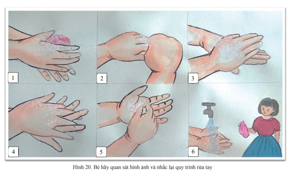 4. Dạy trẻ: Rửa tay như thế nào cho sạch và thực hành rửa tay theo quy trình 6 bước